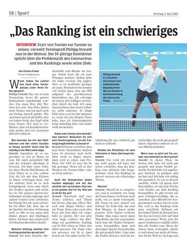Interview. Statt von Turnier zur Turnier zu reisen, verweilt Tennisprofi Philipp Oswald nun in der Heimat. Der 34-jährige Dornbirner spricht über die Problematik des Coronavirus und des Rankings sowie seine Ziele.