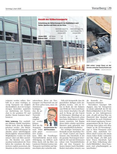 Durch die Schließung der Grenzen entstehen lange Wartezeiten. Die EU lockert die Auflagen bei den Kontrollen vor und während des Transports. Österreich will diese Möglichkeit zwar nicht nutzen, und auf „Green Lanes“ sollen die Transporte den Stau umgehen können. Doch die Situation bleibt unbefriedigend.
