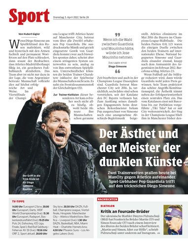 Zwei Trainerwelten prallen heute bei ManCity gegen Atletico aufeinander. Spiel-Liebhaber Pep Guardiola trifft auf den trickreichen Diego Simeone.