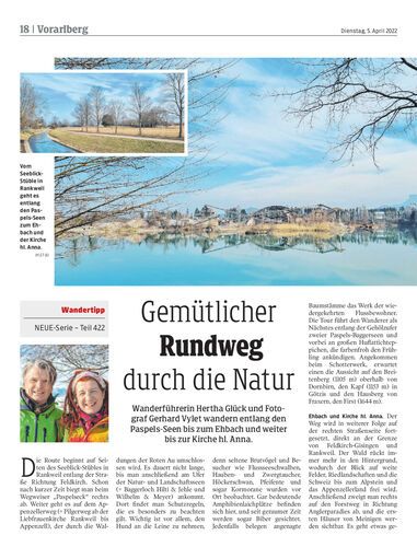 Wanderführerin Hertha Glück und Fotograf Gerhard Vylet wandern entlang den Paspels-Seen bis zum Ehbach und weiter bis zur Kirche hl. Anna.