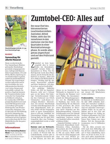 Der neue Chef des börsennotierten Leuchtenherstellers Zumtobel, Alfred Felder, sieht das Unternehmen in den nächsten vier bis fünf Quartalen in einer Restrukturierungsphase. Es werde alles genau angeschaut und auf den Prüfstand gestellt.
