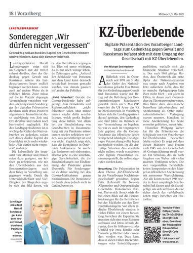 Digitale Präsentation des Vorarlberger Landtags zum Gedenktag gegen Gewalt und Rassismus befasst sich mit dem Umgang der Gesellschaft mit KZ-Überlebenden.