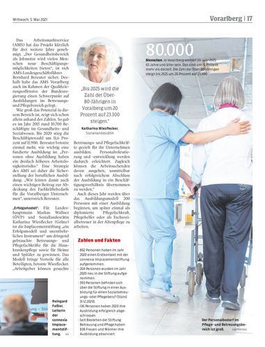 letzten zehn Jahren rund 840 Arbeitslose zu Betreuungs- und Pflegekräften ausgebildet worden. Das AMS hat das Projekt nun für drei weitere Jahre genehmigt.