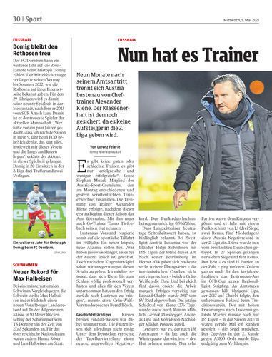Neun Monate nach seinem Amtsantritt trennt sich Austria Lustenau von Cheftrainer Alexander Kiene. Der Klassenerhalt ist dennoch gesichert, da es keine Aufsteiger in die 2. Liga geben wird.