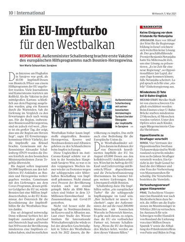 Reportage. Außenminister Schallenberg brachte erste Vakzine des europäischen Hilfsprogramms nach Bosnien-Herzegowina. Von Maria Schaunitzer, Sarajevo