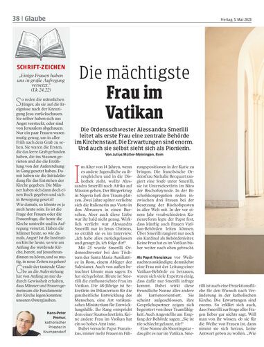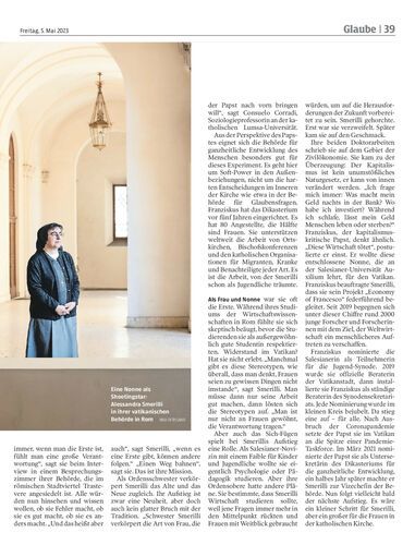 Die Ordensschwester Alessandra Smerilli leitet als erste Frau eine zentrale Behörde im Kirchenstaat. Die Erwartungen sind enorm. Und auch sie selbst sieht sich als Pionierin. Von Julius Müller-Meiningen, Rom