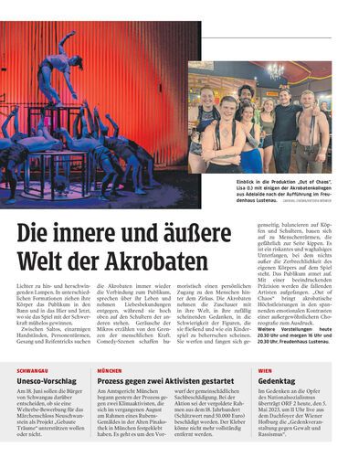 Die australische Zirkuskompanie Gravity & Other Myths gastiert noch bis morgen im Freudenhaus Lustenau mit „Out Of Chaos“.