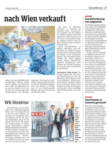 Der bekannte Medizinproduktehändler Andre Surgical wurde zur Gänze von Heintel Gruppe in Wien übernommen. Der Standort in Dornbirn wurde aufgelöst.
