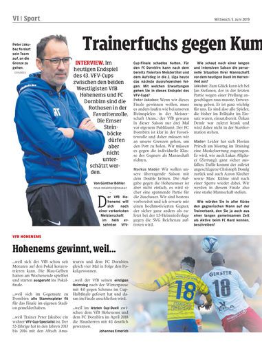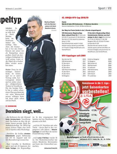 Interview. Im heutigen Endspiel des 43. VFV-Cups zwischen den beiden Westligisten VfB Hohenems und FC Dornbirn sind die Rothosen in der Favoritenrolle. Die Emser Steinböcke dürfen aber nicht unterschätzt werden.