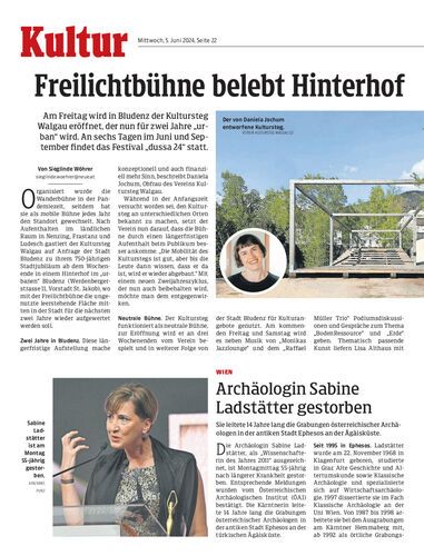Am Freitag wird in Bludenz der Kultursteg Walgau eröffnet, der nun für zwei Jahre „urban“ wird. An sechs Tagen im Juni und September findet das Festival „dussa 24“ statt.