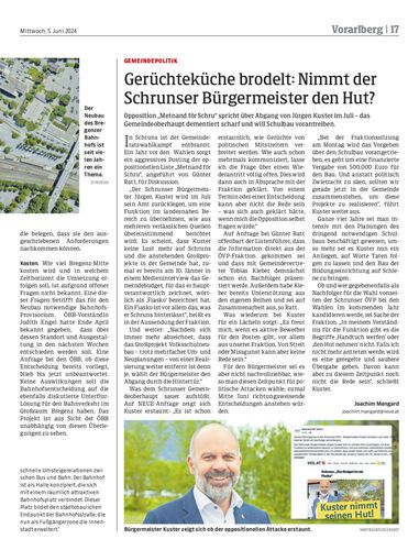 Gerüchteküche brodelt: Nimmt der Schrunser Bürgermeister den Hut?