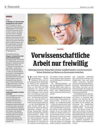 Bildungsminister Polaschek will die verpflichtenden vorwissenschaftlichen Arbeiten zur Matura an Gymnasien streichen.