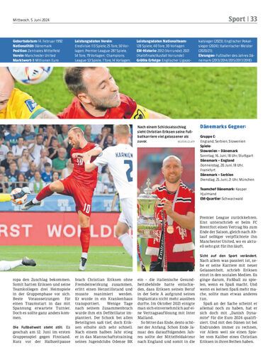 Der Däne Christian Eriksen (32) spielt seit Jahren in den besten Teams Europas, ist in seiner Heimat ob seines Charakters und seiner Einstellung sehr beliebt.