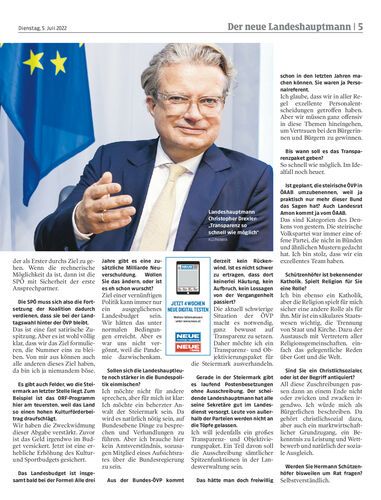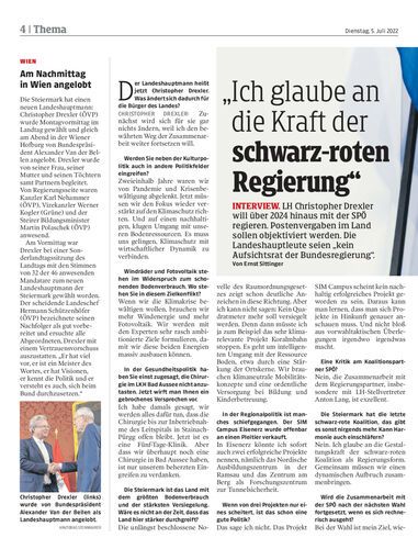 LH Christopher Drexler will über 2024 hinaus mit der SPÖ regieren. Postenvergaben im Land sollen objektiviert werden. Die Landeshauptleute seien „kein Aufsichtsrat der Bundesregierung“. Von Ernst Sittinger