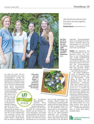 Das Ländliche Fortbildungsinstitut Vorarlberg (LFI) ist die Erwachsenenbildungseinrichtung der Landwirtschaftskammer und der größte Bildungsanbieter im ländlichen Raum.