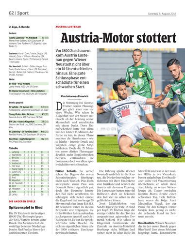 Vor 1800 Zuschauern kam Austria Lustenau gegen Wiener Neustadt nicht über ein 1:1-Unentschieden hinaus. Eine gute Schlussphase entschädigte für einen schwachen Start.