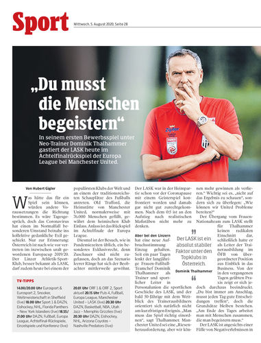 In seinem ersten Bewerbsspiel unter Neo-Trainer Dominik Thalhammer gastiert der LASK heute im Achtelfinalrückspiel der Europa League bei Manchester United.