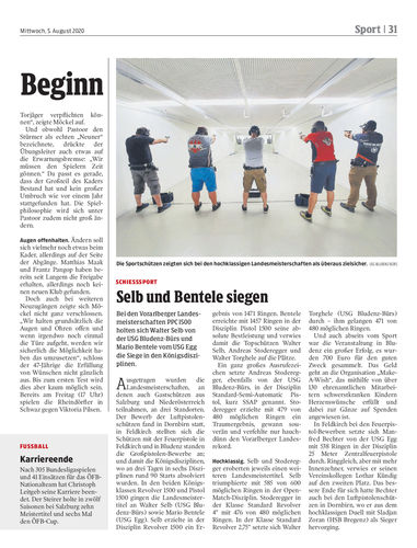Bei den Vorarlberger Landesmeisterschaften PPC 1500 holten sich Walter Selb von der USG Bludenz-Bürs und