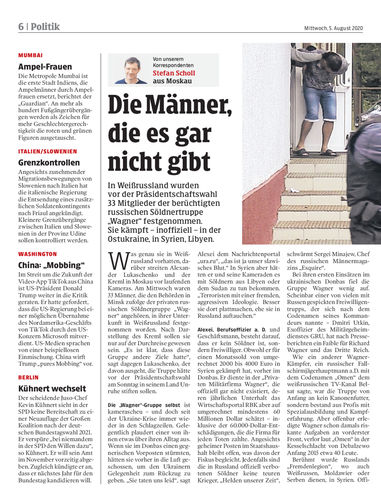 In Weißrussland wurden vor der Präsidentschaftswahl 33 Mitglieder der berüchtigten russischen Söldnertruppe „Wagner“ festgenommen. Sie kämpft – inoffiziell – in der Ostukraine, in Syrien, Libyen.
