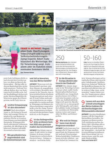 FRAGE & ANTWORT. Regen ohne Ende, Überflutungen, Vermurungen und massive Verkehrsbehinderungen: Zamg-Experte Albert Sudy bilanziert die Wetterlage, die für Verwüstung sorgt, trotz allem aber im Rahmen eines normalen Sommers bleibt. Von Thomas Golser