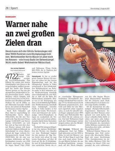 Heute kann sich der Götzis-Seriensieger mit über 9000 Punkten zum Olympiasieger krönen. Weltrekordler Kevin Mayer ist aber noch im Rennen – wie Ivona Dadic im Siebenkampf. Nicht mehr dabei: Weltmeister Niklas Kaul.