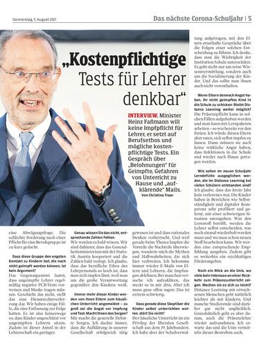 Minister Heinz Faßmann will keine Impfpflicht für Lehrer, er setzt auf Berufsethos und mögliche kostenpflichtige Tests. Ein Gespräch über „Belohnungen“ für Geimpfte, Gefahren von Unterricht zu Hause und „aufklärende“ Mails. Von Christina Traar