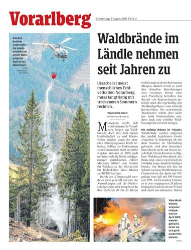 Ursache ist meist menschliches Fehlverhalten. Vorarlberg muss langfristig mit trockeneren Sommern rechnen.