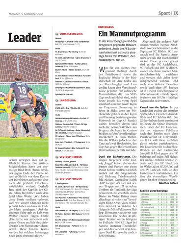 In der Vorarlbergliga sind die Bregenzer gegen die Bizauer gefordert. Auch der FC Lustenau bekommt es heute eine Liga tiefer mit Wäldern, den Sulzbergern, zu tun.