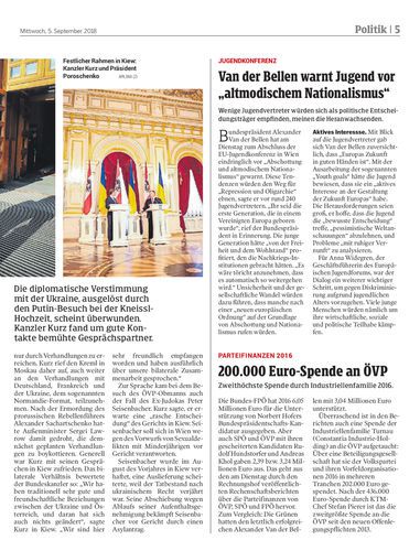 Die diplomatische Verstimmung mit der Ukraine, ausgelöst durch den Putin-Besuch bei der Kneissl-Hochzeit, scheint überwunden. Kanzler Kurz fand um gute Kontakte bemühte Gesprächspartner.