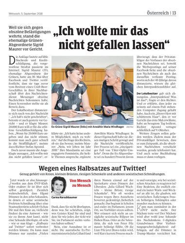 Weil sie sich gegen obszöne Belästigungen wehrte, stand die ehemalige Grünen- Abgeordnete Sigrid Maurer vor Gericht.