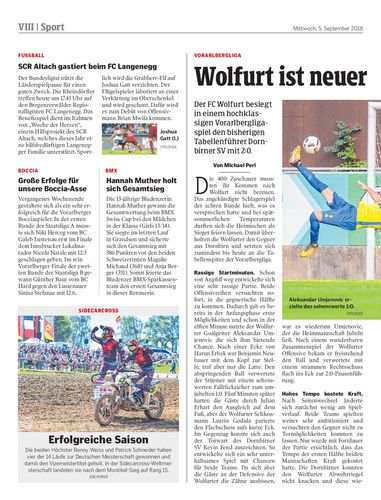 Der FC Wolfurt besiegt in einem hochklassigen Vorarlbergligaspiel den bisherigen Tabellenführer Dornbirner SV mit 2:0.