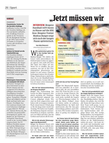 Interview. Bregenz Handball trifft heute zu Hause auf die HSG Graz. Bregenz-Trainer Markus Burger zeigt sich nach der langen Pause optimistisch.