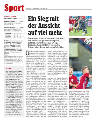 Österreichs Fußballteam kam zum Start der Nations League in Norwegen zu einem hochverdienten 2:1-Erfolg. Gregoritsch und Sabitzer trafen. Die Österreicher dominierten das Spiel klar.