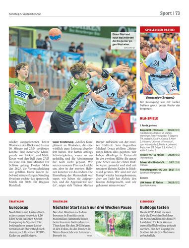 Bregenz Handball feiert zum Saisonstart einen deutlichen 30:24-Erfolg gegen Westwien. Mikhail Vinogradov feierte einen starken Einstand.