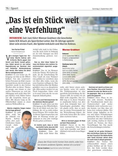 Interview. Seit Juni führt Werner Grabherr die Geschicke beim SCR Altach als Sportlicher Leiter. Der 35-Jährige spricht über sein erstes Fazit, die Spielerverkäufe und Martin Kobras.
