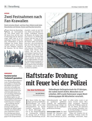Streit zwischen Altach- und Graz-Fans. Polizei wurde beim Einschreiten mit Steinen, Kisten und Flaschen beworfen.