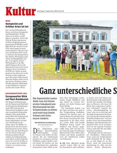 Die Sopranistin Louise Alder war mit ihrem ersten Soloabend am Wochenende bei der Schubertiade zu hören und noch mal Andrè Schuen mit Schumann-Liedern.