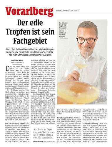 Einst fiel Fabian Mennel bei der Weinkellerprüfung durch, nun kürte „Gault Millau“ den Götzner zum Schweizer Sommelier des Jahres.
