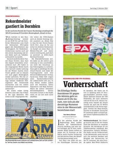 In der sechsten Runde der Frauen-Bundesliga empfängt die SPG FC Lustenau/FC Dornbirn Neulengbach, Altach in Graz.