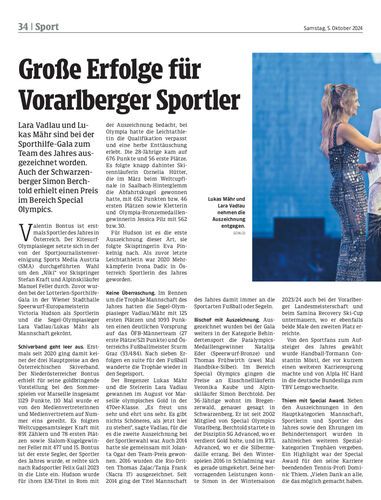 Lara Vadlau und Lukas Mähr sind bei der Sporthilfe-Gala zum Team des Jahres ausgezeichnet worden. Auch der Schwarzenberger Simon Berchtold erhielt einen Preis im Bereich Special Olympics.