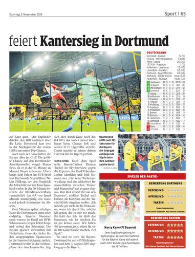 Spielbericht. Der FC Bayern deklassiert am 10. Spieltag Borussia Dortmund im Signal-Iduna-Park mit 4:0. Harry Kane gelingt vor 81.365 Zuschauern sein dritter Hattrick für die Bayern.