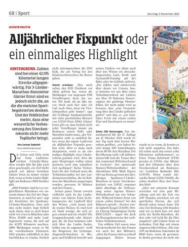 Hintergrund. Zahlen sind bei einer 42,195 Kilometer langen Strecke allgegenwärtig. Für 3-Länder-Marathon-Rennleiter Günter Ernst sind es jedoch nicht die, an die die meisten Sportbegeisterten denken. Und der Feldkircher meint, dass eine wesentliche Verbesserung des Streckenrekords nicht mehr Topläufer bringt.