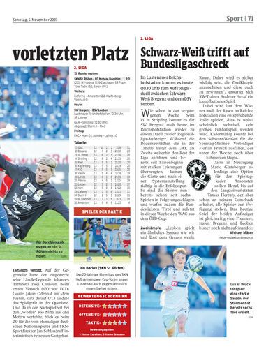 Im Lustenauer Reichshofstadion kommt es heute (10.30 Uhr) zum Aufsteigerduell zwischen Schwarz-Weiß Bregenz und dem DSV Leoben.