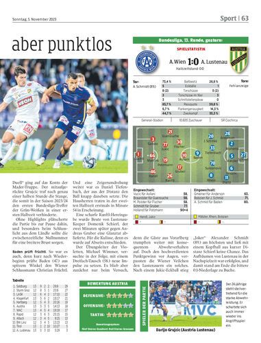 Spielbericht. Ein verdientes 0:0 vor Augen, müssen die Lustenauer vor 10.820 Zuschauern kurz vor Schluss beim Namensvetter in Wien-Favoriten das 0:1 hinnehmen.
