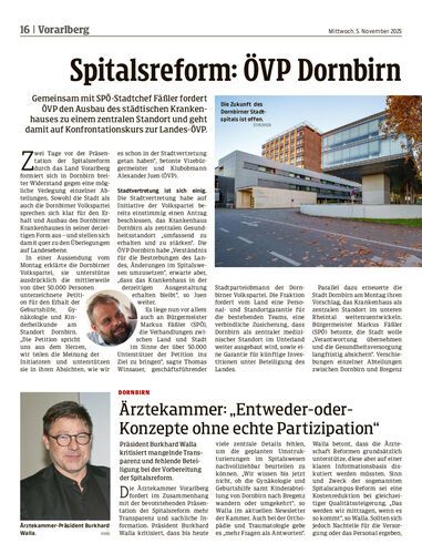 Spitalsreform: ÖVP Dornbirn legt sich quer