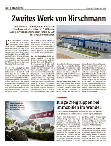 Innerhalb von zehn Monaten wurde von Hirschmann Automotive um 17 Millionen Euro ein Produktionsstandort für bis zu 600 Mitarbeitende errichtet.