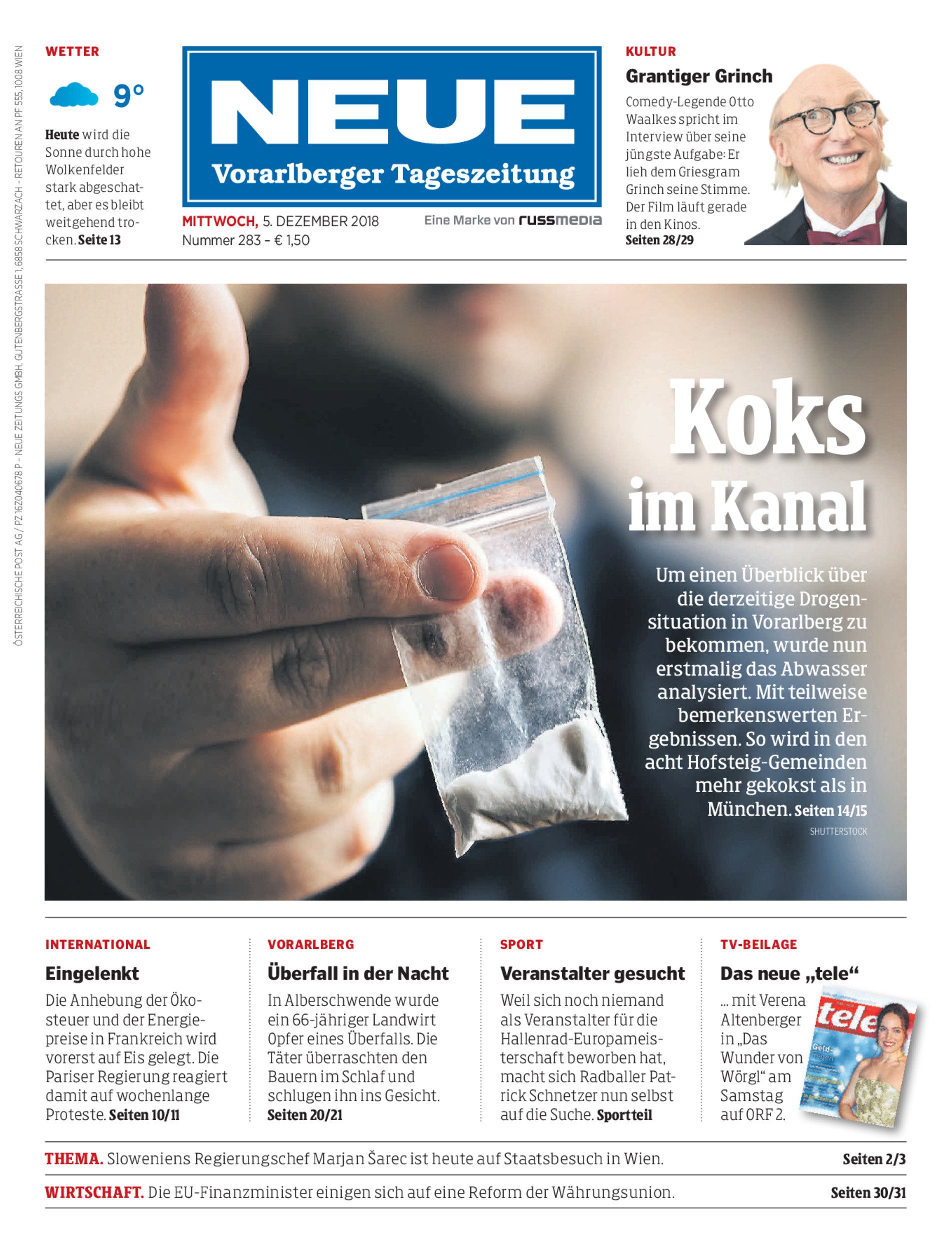 Erstmals wurde für den Vorarlberger Suchtbericht das Abwasser analysiert. Mit teilweise bemerkenswerten Ergebnissen.