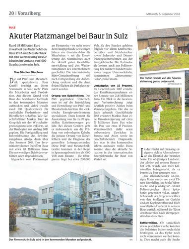 Rund 1,8 Millionen Euro investiert das Unternehmen Baur Prüf- und Messtechnik für eine Aufstockung des Gebäudes im Umfang von 1000 Quadratmetern in Sulz.