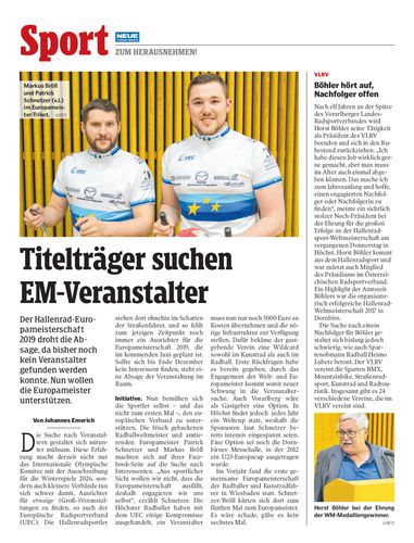 Der Hallenrad-Europameisterschaft 2019 droht die Absage, da bisher noch kein Veranstalter gefunden werden konnte. Nun wollen die Europameister unterstützen.