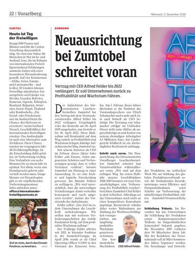 Vertrag mit CEO Alfred Felder bis 2022 verlängert. Er soll Unternehmen zurück zu Profitabilität und Wachstum führen.
